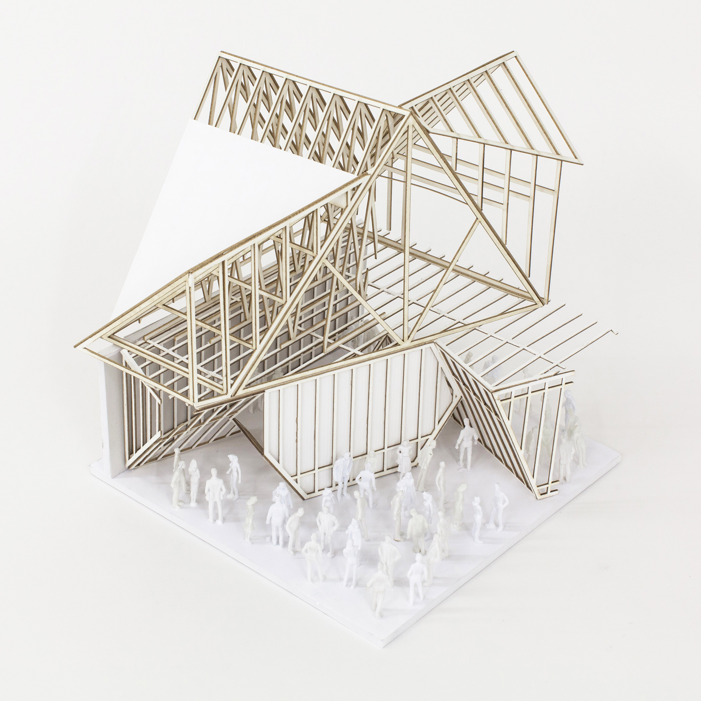 The construction of the roof and deck exploit the tendency to accumulate waste that building practices typically produce. Rather than discard material remnants off-site, excess is cut and refit into the project for use. The roof’s gutter system redirects water that would otherwise go to waste into a collection and retention system – turning an otherwise mundane aspect of exterior architectural drainage into a feature with water fit for use. Borrowing from the language of the architectural building site, the always-in-process roof is made more fit as uses change and tempos shift.